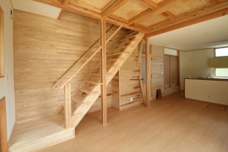 杉板と漆喰塗料に包まれた天然素材にこだわった子育て世代の住まいです。